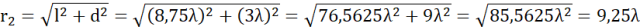 Wykaż, że detektor umieszczony w punkcie P nie zarejestruje promieniowania pochodzącego od dwóch źródeł mikrofal w zgodnej fazie, gdy źródła są odległe od siebie d = 3λ, a odległość między źródłem Z1 a punktem P wynosi l = 8,75λ.