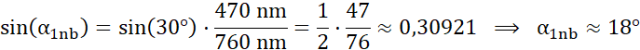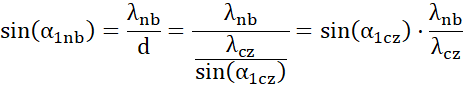 Wyznaczamy kąt ugięcia fali niebieskiej: