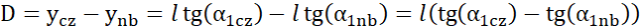 Z funkcji trygonometrycznych określ tangens kąta ugięcia obu fal, a następnie wyznacz odległość każdego z nich od prążka nieugiętego. Określ szerokość powstałego widma, jako różnicę tych odległości. Skorzystaj z wyznaczonego kąta ugięcia fali niebieskiego w podpunkcie a).