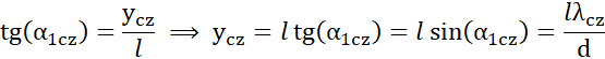 Ze wzoru można zauważyć, że im większa odległość siatki dyfrakcyjnej od ekranu, tym większa szerokość widma.