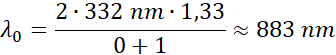 Oblicz długości fal, jakie ulegną wzmocnieniu i wygaszeniu interferencyjnemu w wyniku odbicia fal od dwóch powierzchni błony mydlanej, wiedząc, że bańka mydlana o stałej grubości d = 332 nm jest oświetlana światłem białym padającym prostopadle do jej powierzchni, a współczynnik załamania wody z mydłem jest równy n = 1,33. Rozważ trzy kolejne wzmocnienia i wygaszenia fal.