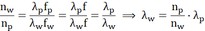 Najpierw skorzystaj z prawa Snelliusa (załamania światła) i wyznacz długość fali w wodzie w zależności od jej długości w powietrzu (dla którego współczynnik załamania wynosi 1). Skorzystaj z faktu, że podczas zmiany ośrodka nie dochodzi do zmiany częstotliwości.
