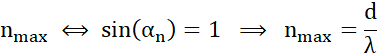 Oblicz, jaki największy rząd widma można zaobserwować na siatce dyfrakcyjnej o stałej d = 0,004 mm, gdy pada na nią prostopadle światło monochromatyczne o długości λ = 580 nm.