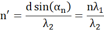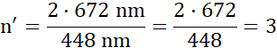 Gdy na siatkę dyfrakcyjną pada prostopadle wiązka światła o długości λ1 = 672 nm prążek drugiego rzędu jest widoczny pod kątem α. Oblicz, który prążek będzie widoczny pod tym samym kątem, jeśli na siatkę skierujemy prostopadle światło o długości λ2 = 448 nm.