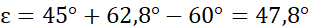 Na podstawie wyników eksperymentu przeprowadzonego przez uczniów oblicz miarę kąta ε – odchylenia promienia wychodzącego z pryzmatu od jego początkowego biegu. Wykorzystaj dane przedstawione w treści zadania oraz rysunek zamieszczony w podręczniku.