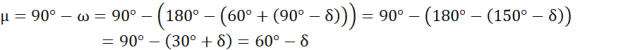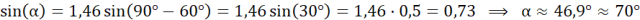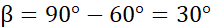 Zauważ, że utworzony mały trójkąt jest równoboczny, więc kąt β wraz z kątem 60° tworzy kąt prosty. W takim razie miara kąta β jest równa 30°.