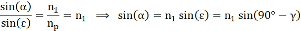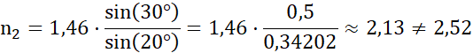 Zauważ, że jego wartość jest większa od 1, co jest sprzecznością. W takim razie promień nie opuści drugiego pryzmatu i zajdzie zjawisko całkowitego wewnętrznego odbicia.