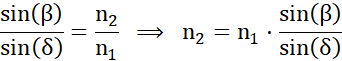 Skorzystaj z prawa załamania światła, które mówi, że stosunek sinusa kata padania do sinusa kąta załamania jest dla dwóch danych ośrodków stały i równy stosunkowi współczynników załamania światła w tych ośrodkach. Na tej podstawie wyznacz współczynnik załamania drugiego pryzmatu.