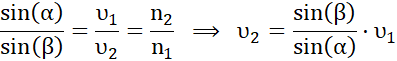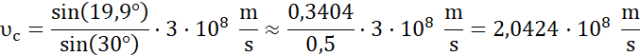 Skorzystaj z prawa załamania, które mówi, że stosunek sinusa kata padania do sinusa kąta załamania jest dla dwóch danych ośrodków stały i równy stosunkowi szybkości światła w tych ośrodkach. Na tej podstawie wyznacz najpierw szybkość fali w cieczy.