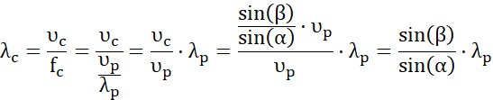 Następnie skorzystaj z faktu, że podczas zmiany ośrodka częstotliwość fali nie ulega zmianie, aby obliczyć długość tej fali w cieczy.