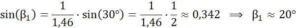 Wyznaczamy zmianę kąta załamania: