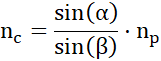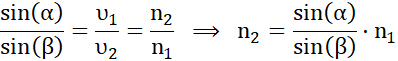 Skorzystaj z prawa załamania, które mówi, że stosunek sinusa kata padania do sinusa kąta załamania jest dla dwóch danych ośrodków stały i równy stosunkowi szybkości światła w tych ośrodkach. Na tej podstawie wyznacz współczynnik załamania światła w cieczy.