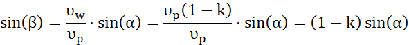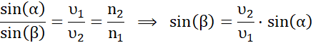 Skorzystaj z prawa załamania, które mówi, że stosunek sinusa kata padania do sinusa kąta załamania jest dla dwóch danych ośrodków stały i równy stosunkowi szybkości światła w tych ośrodkach. Na tej podstawie wyznacz sinus kąta załamania.
