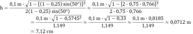 Korzystając z zależności trygonometrycznych, wyznacz funkcję tangens kąta załamania w zależności od jego funkcji sinus. Następnie określ głębokość, znając funkcję tangens.