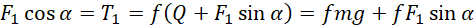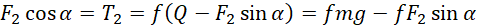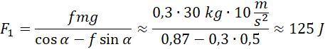 Zapisujemy I zasadę dynamiki w obu przypadkach na kierunku x. Przekształcamy powstałą zależność i obliczamy siły.