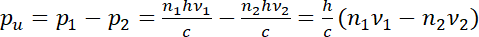 Pęd układu dwóch wiązek fotonów poruszających się w przeciwne strony będzie równy różnicy pędów tych wiązek. Pęd pierwszej wiązki o