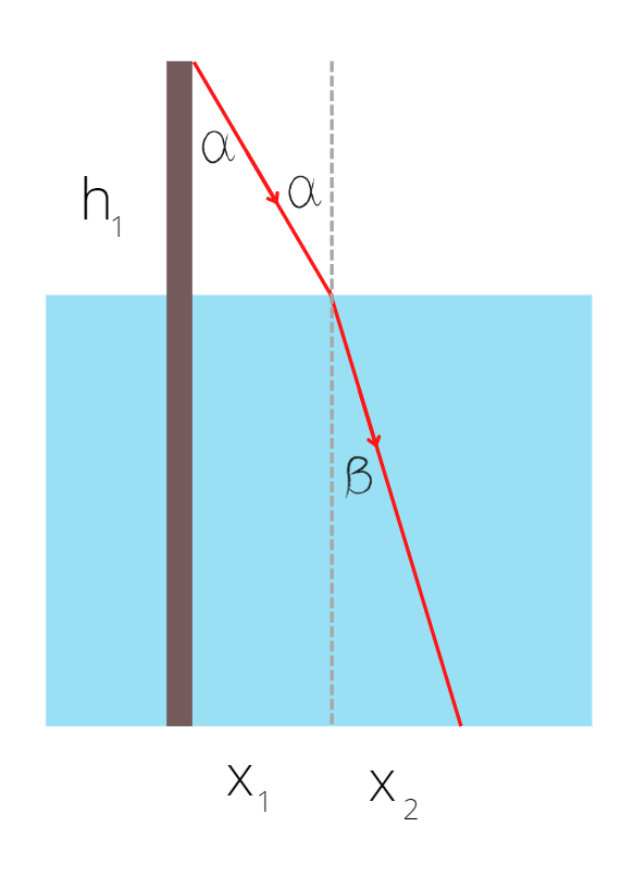 Oblicz długość cienia drewnianego pala wbitego w jezioro, korzystając z danych przedstawionych w treści zadania.
