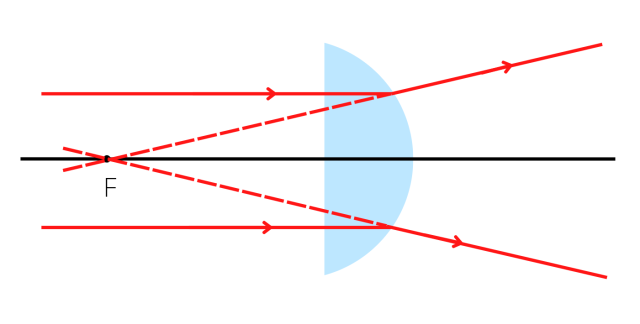 Odpowiedz, czy szklana soczewka płasko-wypukła umieszczona w ośrodku o większym współczynniku załamania niż szkło jest soczewką skupiającą czy rozpraszającą. Narysuj rysunek przedstawiający tą sytuację.