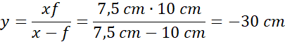 Korzystając z równania soczewki, wyznacz odległość obrazu od soczewki. Następnie oblicz wartość powiększenia. Na koniec znajdź średnicę powstałego obrazu mnożąc wartość średnicy przedmiotu razy wartość obliczonego powiększenia.