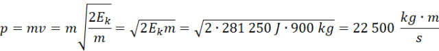 Wiedząc, że energia kinetyczna samochodu o masie 900 kg wynosi 281,25 kJ oblicz wartość jego pędu.
