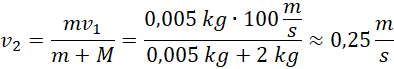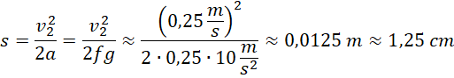 Na początku obliczamy prędkość pocisku po przejściu przez zwał piasku, korzystając z równań ruchu jednostajnie opóźnionego. Następnie za pomocą zasady zachowania pędu obliczamy prędkość, jaka zostanie nadana klockowi po wbiciu się w niego pocisku. Na koniec obliczamy drogę przebytą przez klocek ze wbitym pociskiem, korzystając ponownie z równań ruchu jednostajnie opóźnionego.
