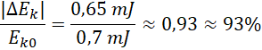 Aby otrzymać wartość procentową, dzielimy przez siebie ubytek energii kinetycznej przez jej pierwotną wartość.