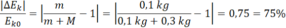 Korzystając ze wzoru wyprowadzonego w poprzednim podpunkcie oblicz wartość liczbową , a także wyraź w procentach względny ubytek energii kinetycznej, przyjmując wypisane w treści zadania dane liczbowe.