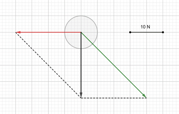 Wypadkową sił nierównoległych wyznacz zgodnie z regułą równoległoboku - początki wektorów zaczepiamy w jednym punkcie, a one same tworzą dwa boki równoległoboku, kolejno dwa pozostałe dorysowujemy. Przekątna powstałej figury jest wektorem wypadkowym.