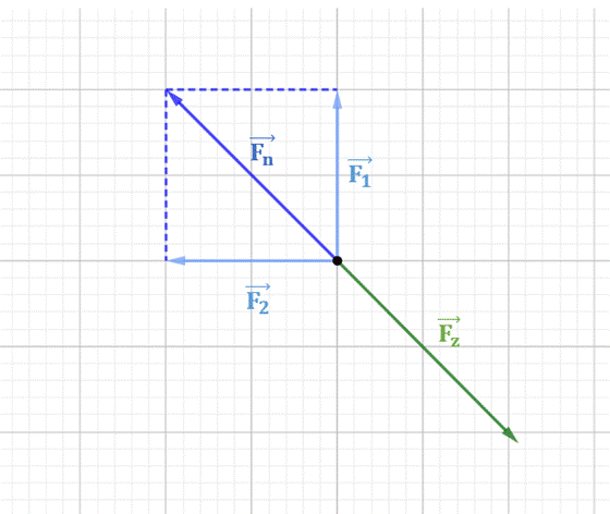 Wyznacz wypadkową drużyny niebieskiej za pomocą reguły równoległoboku. Powstała wypadkowa jest równa przekątnej kwadratu wyrażanej: