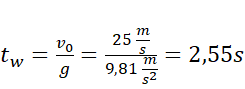 Oblicz czas wznoszenia jako iloraz prędkości początkowej i przyspieszenia grawitacyjnego. Pamiętaj, że czas wznoszenia i czas opadania są sobie równe. Porównaj wartość ich sumy z czasem podanym w treści.