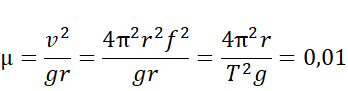 Siła odśrodkowa jest równoważona przez tarcie: