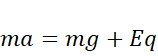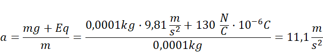Pole elektryczne przyciąga ładunek na kulce, a samą kulkę przyciąga siła grawitacyjna. Zatem przyspieszenie jej będzie wynikało z siły wypadkowej będącej sumą ciężaru i siły elektrycznej.