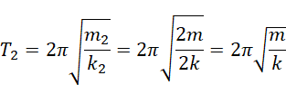 Udowodnij, że gdy w wahadła sprężynowym masa ciężarka wzrośnie dwukrotnie oraz współczynnik sprężystości sprężyny będzie dwa razy większy, to okres drgań wahadła pozostanie bez zmian.