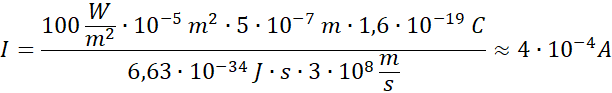 Do wyrażenia na natężenie prądu podstawiamy wyznaczoną moc i natężenie promieniowania: