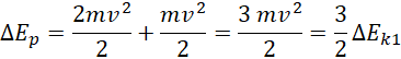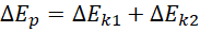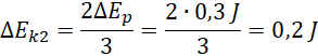 Zapisujemy zasadę zachowania energii mechanicznej. Wartość, o jaką zmalała energia potencjalna klocka została przekształcona w energię kinetyczną dwóch klocków.
