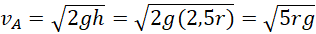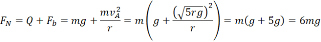 Zapisujemy zasadę zachowania energii, rozpatrując punkt na wysokości oraz w punkcie A. Następnie obliczamy siłę nacisku na równię, która jest równa sumie siły ciężkości i siły bezwładności.