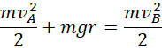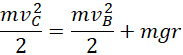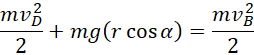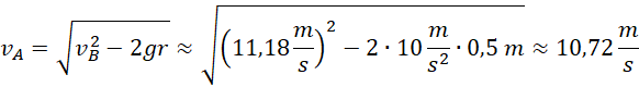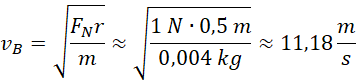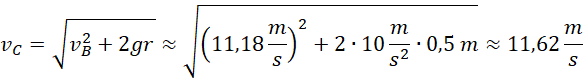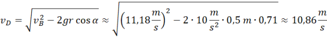 Korzystając z I zasady dynamiki dla punktu B obliczamy prędkość w tym punkcie. Następnie, dobierając odpowiednio poziom 0 obliczamy prędkości w pozostałych punktach stosując zasadę zachowania energii mechanicznej.
