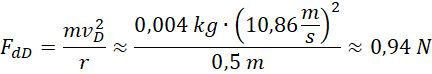 Korzystając z rysunku przedstawionego w podręczniku oraz danych podanych w treści zadania oblicz wartości sił dośrodkowych działających na guzik w punktach A, B, C i D oraz wartości sił, którymi nitka działa na guzik w tych punktach.