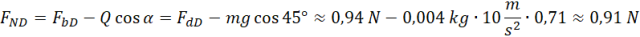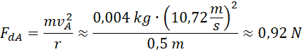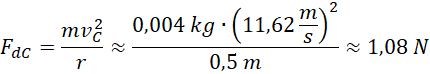 Siły dośrodkowe obliczamy poprzez skorzystanie z odpowiedniego wzoru i danych obliczonych w poprzednim punkcie. Siły naciągu obliczamy poprzez zapisanie I zasady dynamiki na kierunku związanym z siłą naciągu, więc na kierunku promienia okręgu.