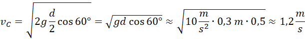 Stosujemy zasadę zachowania energii mechanicznej zakładając, że poziom zero znajduje się na wysokości punktu C.