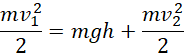 Korzystamy z zasady zachowania energii mechanicznej. Energia kinetyczna u podstawy równi jest równa energii kinetycznej i potencjalnej na szczycie równi.