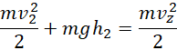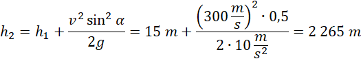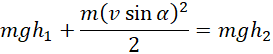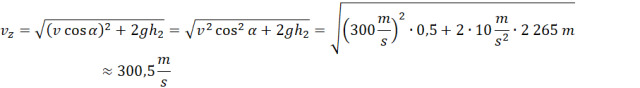 Korzystamy z zasady zachowania energii mechanicznej na kierunku pionowym. Rzutujemy wektor prędkości w punkcie 1 na kierunek y. Następnie zapisujemy zasadę zachowania energii w punkcie 2 i w punkcie przy ziemi.