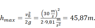 Oblicz, na jaką wysokość wzniesie się rakieta po wystrzale. Następnie oblicz, po jakim czasie osiągnie najwyższy punkt ruchu. Obliczona wysokość i pozostały czas po odjęciu czasu wznoszenia to wielkości, które należy podstawić do wzoru na prędkość opadania.