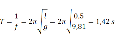 Wahadło wpadnie w rezonans tylko wtedy, kiedy częstotliwość pokonywania przerw w między szynami będzie równa częstotliwości wahadła. Oblicz wartość okresu wahadła matematycznego. Następnie podstaw go jako czas w równaniu prędkości pokonywani szyny przez pociąg.