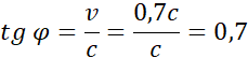 Wykorzystaj wzór na tangens kąta odchylenia i wstaw dane z treści zadania. Następnie do obliczenia kąta użyj funkcji lub odczytaj wartość kąta z tabeli.