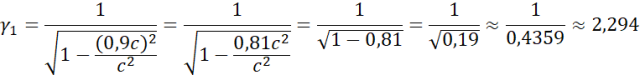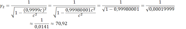 Zapisz wzór na współczynnik, a następnie w obu przypadkach wstaw wartości prędkości w formie niewiadomych i wykonaj obliczenia. Jeśli współczynnik ma wartość większą lub zdecydowanie większą niż 1 w opisanej sytuacji uwzględnia się efekty relatywistyczne.