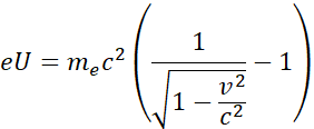 Zapisz zależność przedstawioną w treści zadania i wyznacz wartość nieznanych parametrów. Następnie, korzystając z zasady zachowania energii, zapisz równość pracy wykonanej przez akcelerator cząstek i energii kinetycznej elektronu. Przekształć wzór, wstaw odpowiednie dane liczbowe i wykonaj obliczenia.
