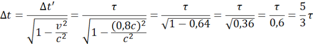 Średni czas życia cząstki w układzie własnym jest równy τ. Cząstka ma prędkość . Wiedząc to, określ czas zmierzony przez nieruchomego obserwatora: