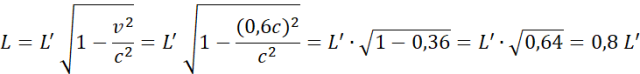 Wykorzystaj wzór opisujący zależność między długościami drogi mierzonymi w dwóch układach wyprowadzony na podstawie transformacji Lorentza. Wstaw dane liczbowe i wykonaj obliczenia.