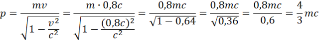 Wykorzystaj wzory na pęd i energię kinetyczną w mechanice relatywistycznej. Uprość je, a następnie wstaw dane liczbowe i wykonaj obliczenia.